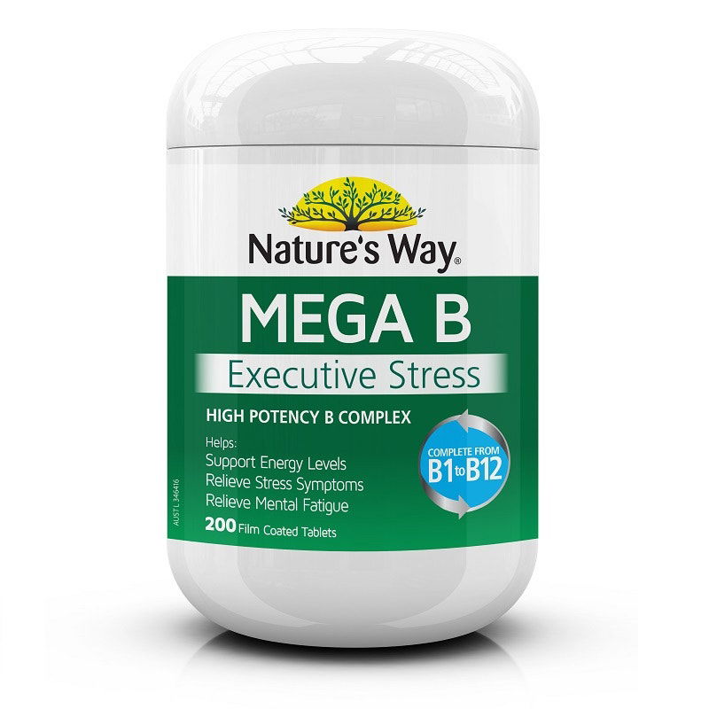 Nature's Way Mega B Executive Stress is a high potency Vitamin B Complex formulation for times of low energy, everyday stress and mental fatigue.
