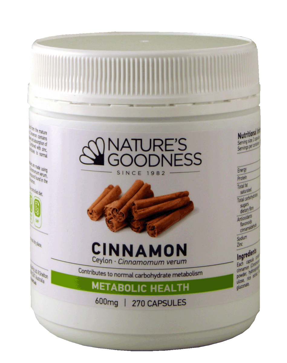 Nature's Goodness Cinnamon capsules are made using the cinnamon of Ceylon cinnamon, Cinnamomum