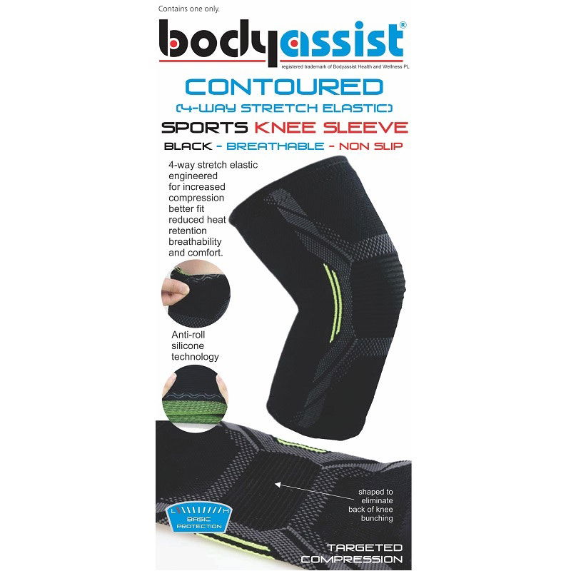BodyAssist Contoured Sports Knee Sleeve Black (Large)