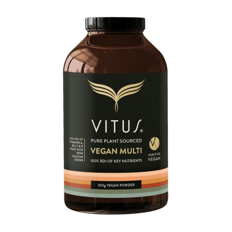 Vitus Vegan Multi masterfully blends over 22 essential vitamins into one all-natural super-powered powder. While all existing multi formulations contain synthetically purified or synthetic vitamins and minerals, Vitus Vegan Multi is 100% sourced from natural food. Vitus Vegan Multi also provides over 100% RDI of key nutrients Vitamins A, B12, C & D, Folic Acid, Calcium, Iron & Iodine; all from natural food-sourced ingredients.