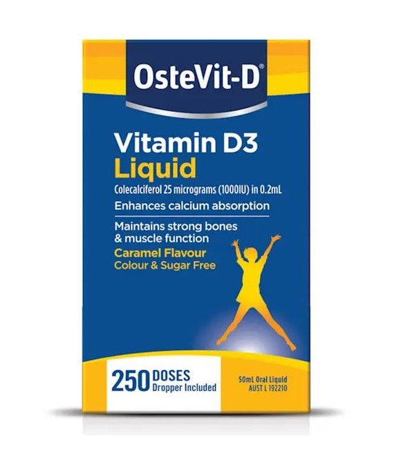 OsteVit-D liquid contains 1000 IU per 0.2 mL. It is a convenient way to take Vitamin D for those people who find swallowing tablets difficult.