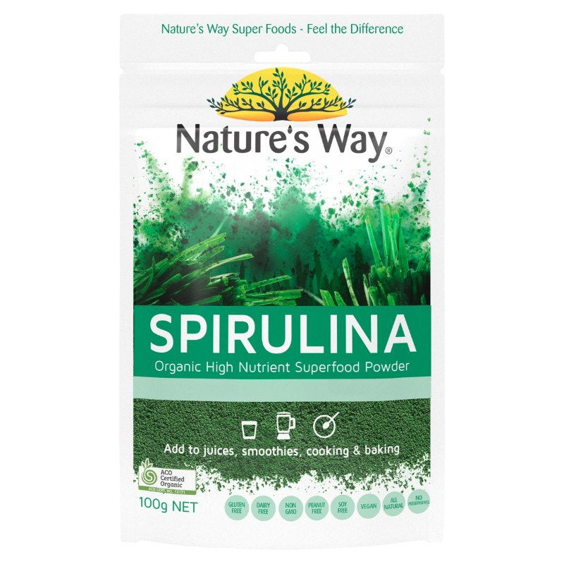 Spirulina is a superfood that contains the nutrient Iron to help support normal energy production and vitality.Choose Nature's Way Super Spirulina for it's organic status and 100% purity - no gluten, no artificial additives and no preservatives.