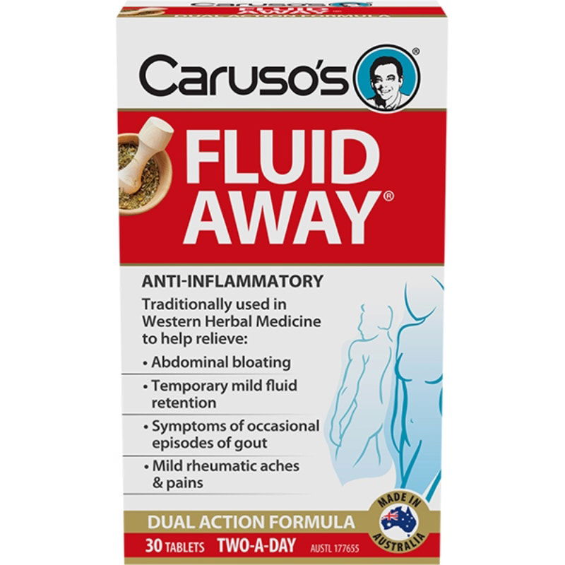 Caruso's Fluid Away has been developed for people who experience mild fluid retention. It contains three high quality herbs: Celery, Dandelion and Phyllanthus, as well as Vitamin B6. These ingredients help to temporarily relieve mild fluid retention and assist the body's natural channels of elimination, through the excretion of metabolic waste.
