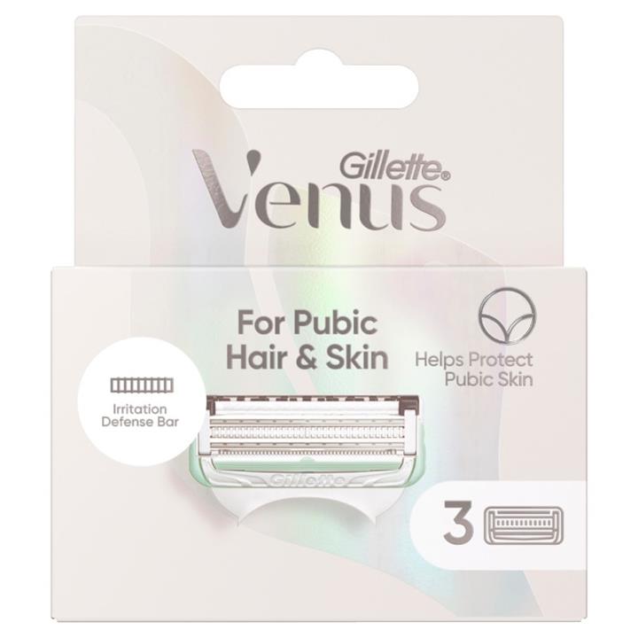 Gillette Venus Women's Razor Blades For Pubic Hair & Skin 3 Pack. Blades specifically designed to protect pubic skin from irritation. Don't settle for bumps, ingrowns and itch.* (*itch due to dry skin) Don't settle for bumps, ingrowns and itch.* (*itch due to dry skin)