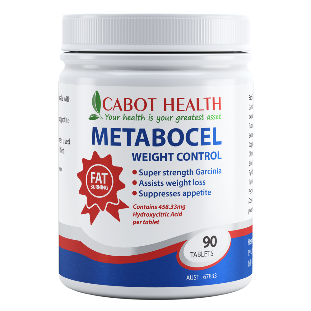 Cabot Health Metabocel Weight Control Tablets formulation combines garcinia with other supportive herbs and nutrients to help improve metabolic rate, when combined with a healthy diet and increased physical activity. Metabocel helps to enhance lean body mass. Our formulation does not contain any caffeine, making it safe for those with high blood pressure or caffeine intolerance. Metabocel may offer you the support you need during your weight loss journey.