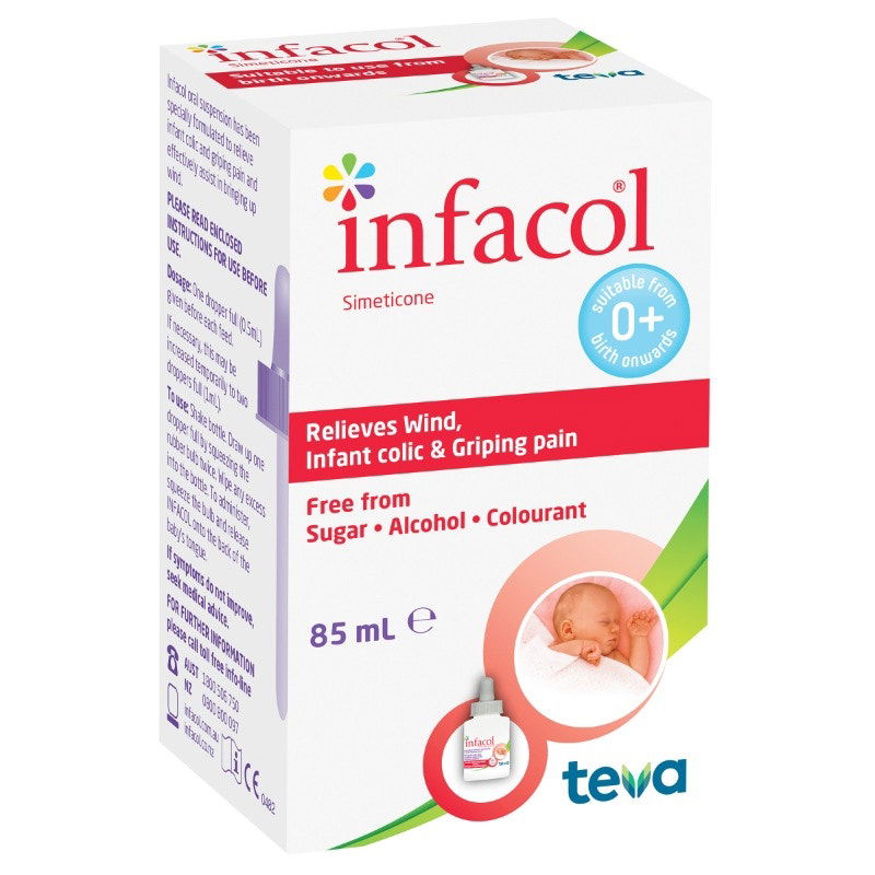 Infacol has been specially formulated to relieve wind, infant colic and griping pain. The discomfort associated with colic may be caused by the build-up of small gas bubbles trapped in the baby’s tummy. Infacol’s active ingredient works by helping the small, trapped gas (air) bubbles join into bigger bubbles, which your baby can easily expel as wind – helping to relieve discomfort.