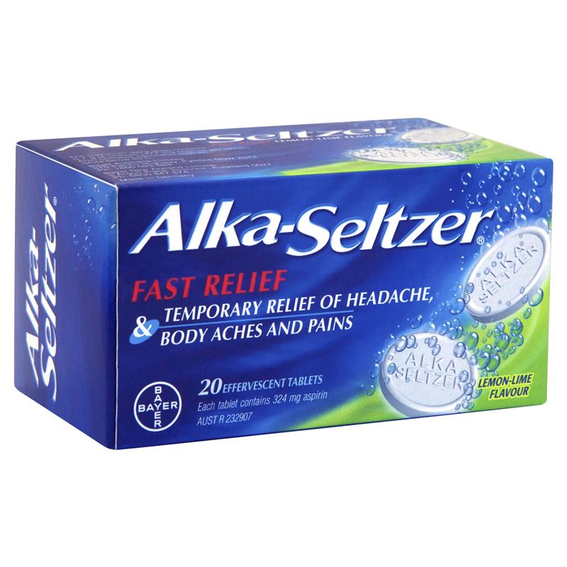 Alka Seltzer Effervescent Tab (Lemon Lime) X 20 provides fast and effective relief from headaches, body aches and pains.