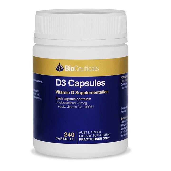 D3 Capsules contains 1000 IU of vitamin D3. Vitamin D supports healthy bone development plus helps maintain bone mineralisation and density. Vitamin D supports the absorption of dietary calcium. It also supports cardiovascular system function, nervous system health and immune system function.