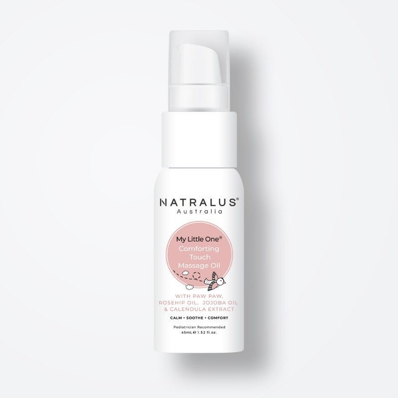 Massage is a beautiful way to bond with your little one. Comforting Touch Massage Oil is gentle & mild on the skin. Designed for a relaxing experience for you & your little one. Made with organic coconut, rosehip, jojoba, and avocado oils.