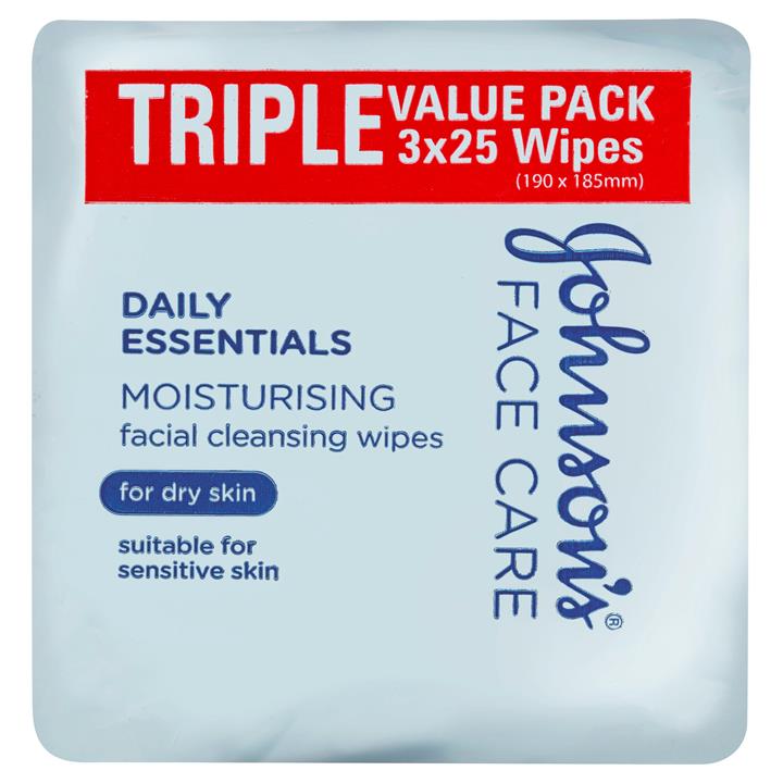 Johnson's Daily Essentials Facial Cleansing Wipes moisturise dry and sensitive skin.