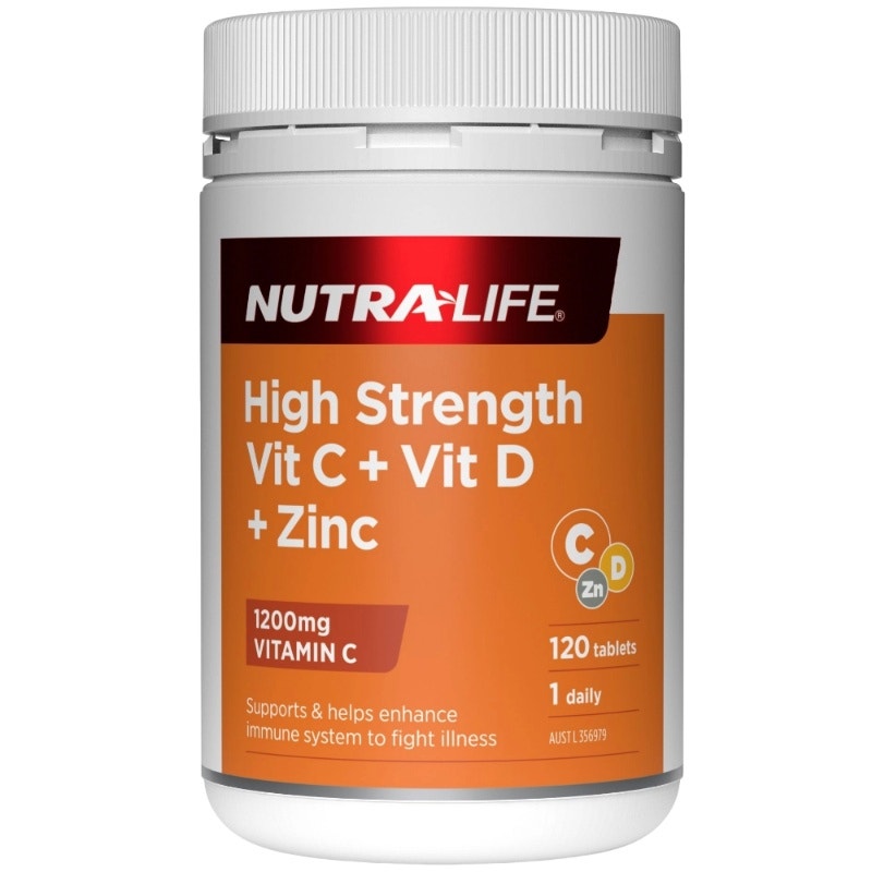 Nutra-Life High Strength Vit C + Vit D + Zinc combines a high strength 1200mg dose of Vitamin C combined with a therapeutic dose of Vitamin D & Zinc to help enhance & support the immune system to fight illness.