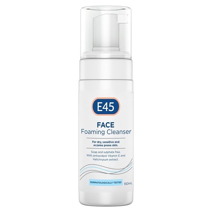 E45 Face Foaming Cleanser is soap and sulphate free and enriched with antioxidant Vitamin E and Helichrysum extract. It effectively cleanses without affecting the skin's natural moisture barrier. Dermatologically tested and ideal for dry, sensitive and eczema-prone skin.