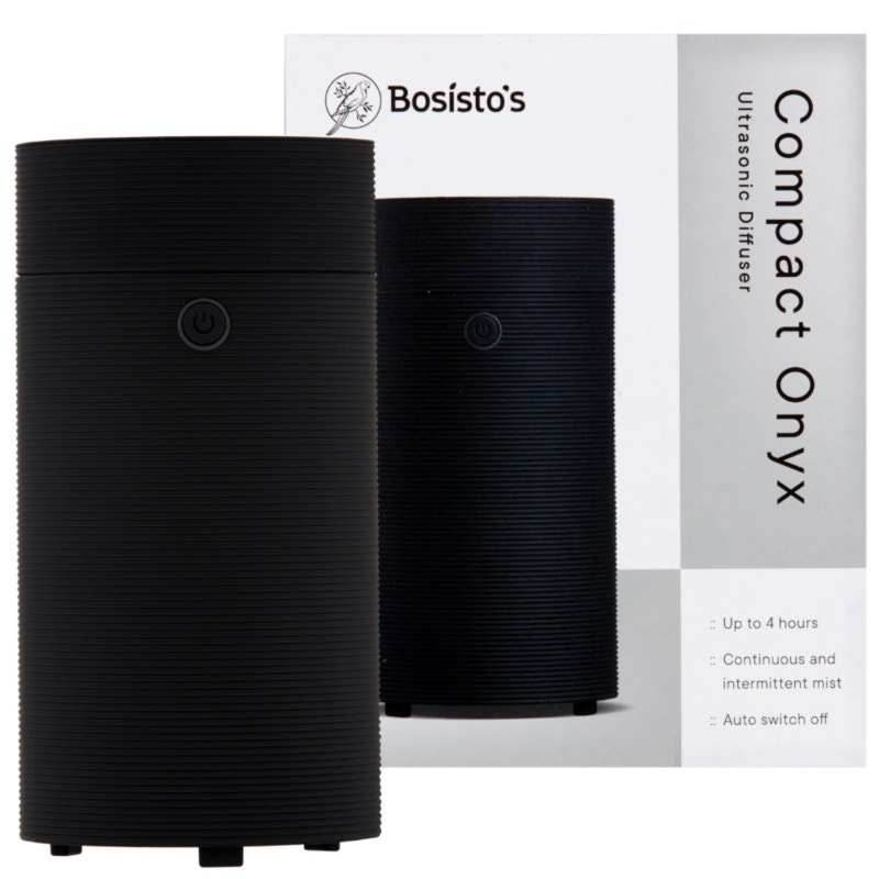 Bosisto's Compact Onyx Ultrasonic Diffuser transforms your room into an oasis with Bosisto's diffuser oils or essential oil blends.