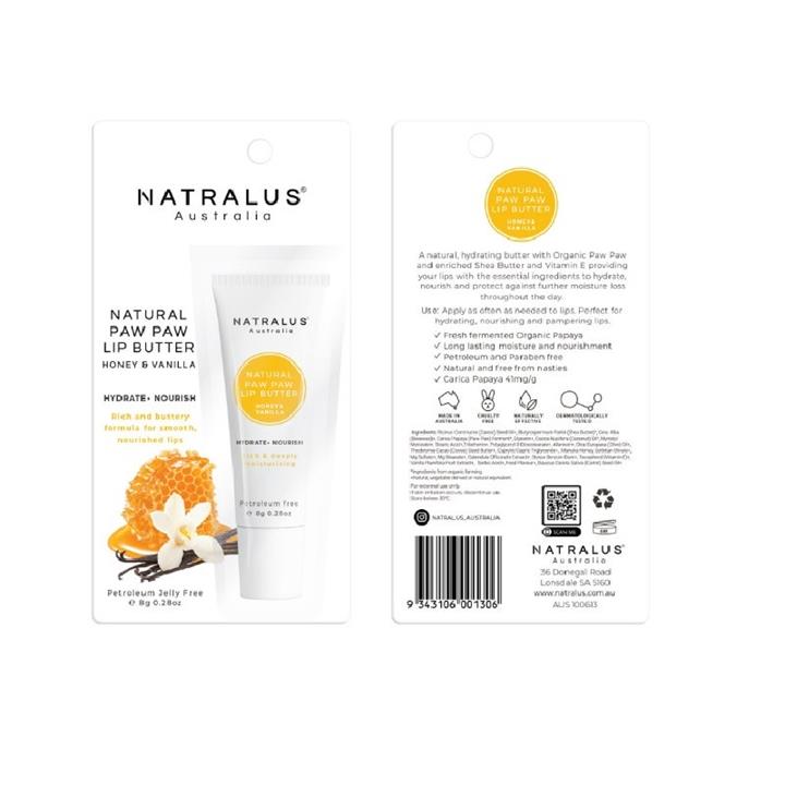 A natural, hydrating butter made with Organic Paw Paw and enriched with Shea Butter and Vitamin E. This long-lasting formula provides you with essential ingredients to nourish, hydrate and protect lips against further moisture loss throughout the day.