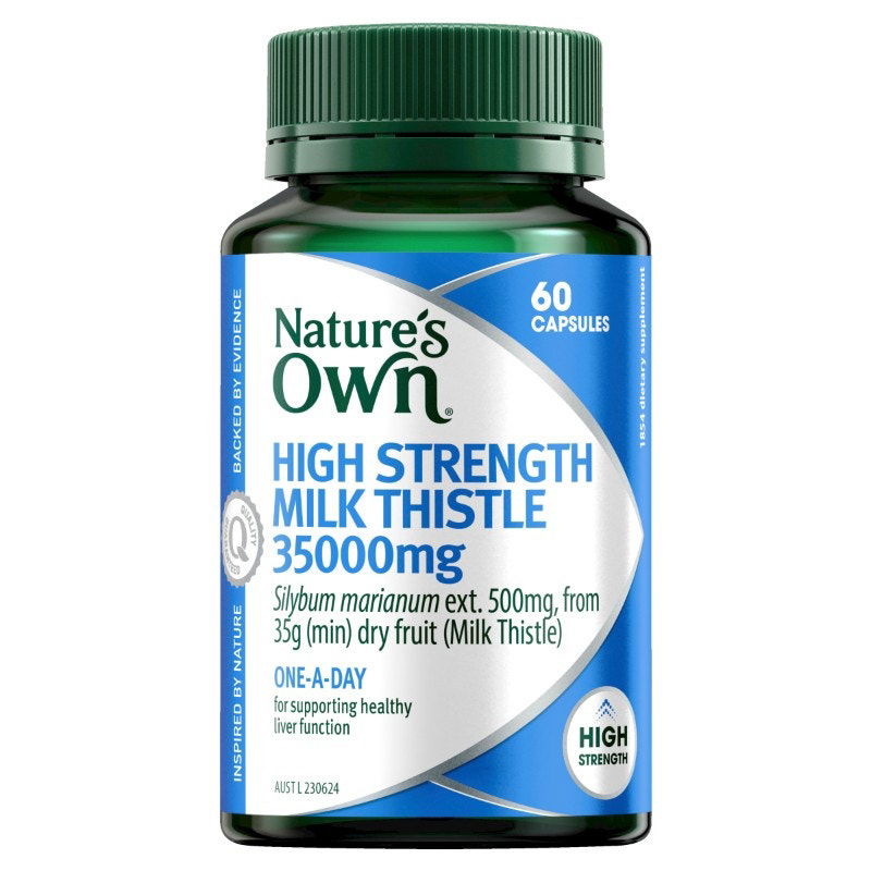 Nature's Own High Strength Milk Thistle 35000mg supports healthy liver function. Milk thistle is traditionally used in Western herbal medicine to protect the liver