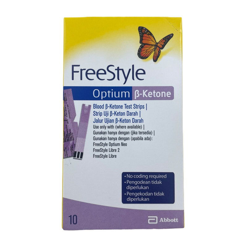 FreeStyle Optium blood β-Ketone test strips are available for the self-testing of blood ketones. The ketone testing strips can be used with the FreeStyle Optium Neo, FreeStyle Optium, Optium Xceed, and Optium meters.
