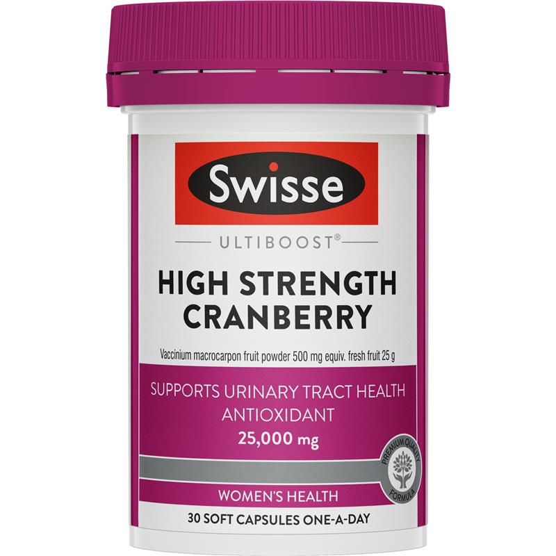 Embark on a journey to support urinary tract health with Swisse Ultiboost High Strength Cranberry. This tailored formula assists in maintaining urinary tract function and supports bladder health. Each soft capsule contains 25g of fresh fruit equivalent cranberry powder, featuring PACRAN® - a unique, whole cranberry fruit powder, high in antioxidants. This go-to supplement supports your urinary tract health and helps relieve symptoms of medically diagnosed cystitis.
