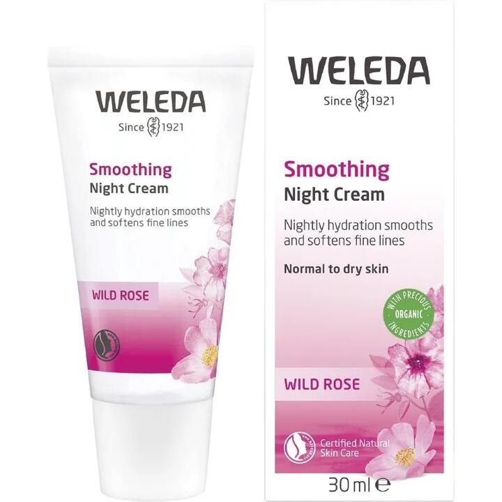 The Weleda Smoothing Night Cream Wild Rose is an intensive overnight treatment designed for normal to dry skin types. Created with organically-grown wild Musk Rose Seed Oil, Evening Primrose Oil and nourishing Myrrh, this rich formula works to regenerate the skin during sleep, softening first lines and preserving skin vitality, leaving you to wake in the morning with a refreshed and radiant complexion.
