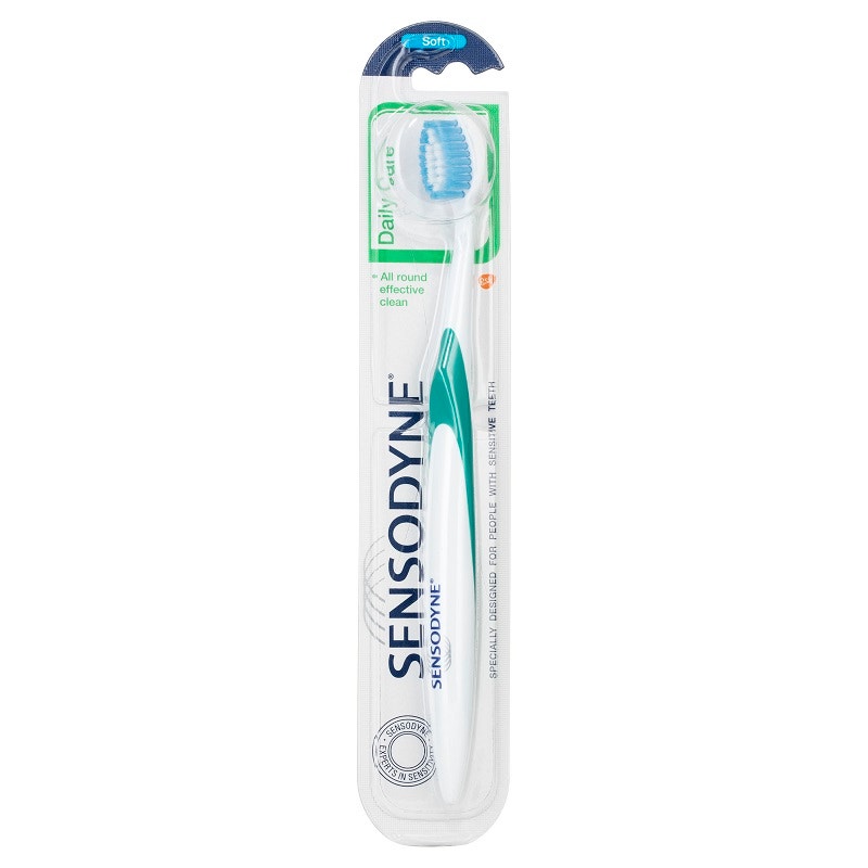 The Sensodyne Sensitive Daily Care Toothbrush is a soft toothbrush suitable for people with sensitive teeth. The Sensodyne Sensitive Daily Care Soft Toothbrush features round-ended bristles to help minimise gum irritation, a dome-shaped head that adapts to the gum line and a small head designed for better access.