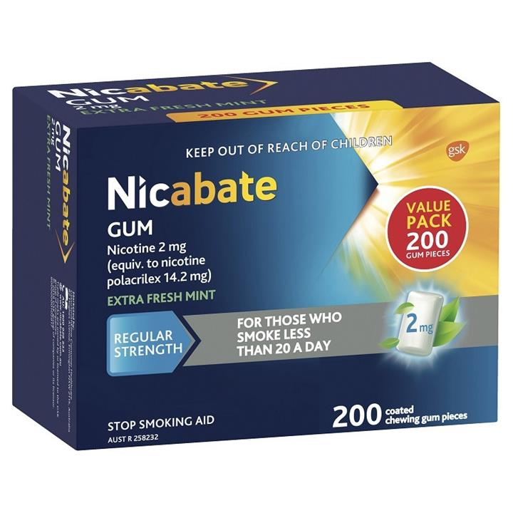 Nicabate Gum Nicotine 2mg Regular Strength Extra Fresh Mint X 200