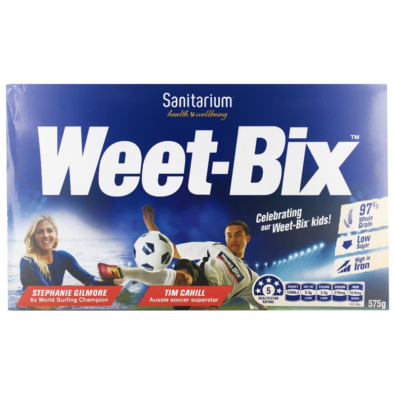 Weet-Bix is packed full of 97% wholegrain goodness, and provides you with a good source of iron and Vitamins B1, B2 and 3 to help release the energy you need to kickstart your day, as part of a balanced diet. Providing a natural source of fibre, Weet-Bix is also low in fat and sugar and contains 5 essential vitamins and minerals.