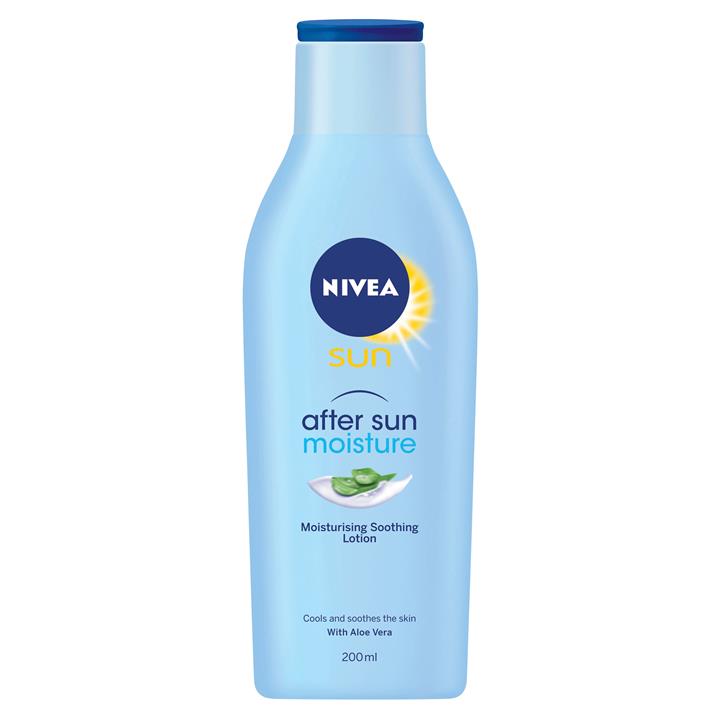 Get relief from sunburn with Nivea Sun After Sun Moisture Lotion. Made with Aloe Vera and Hyaluron, the formula is light and fast absorbing to help soothe and restore your skin's moisture, particularly sunburnt skin. Keep your skin protected with Nivea.